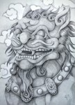 2017Beeld van speksteen, in prachtige kleuren. Achterzijde heeft de natuurlijke vorm van de steen, gepolijst.