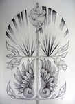 2017Naamloze tekening, plant in bloei met een vogelschedel.